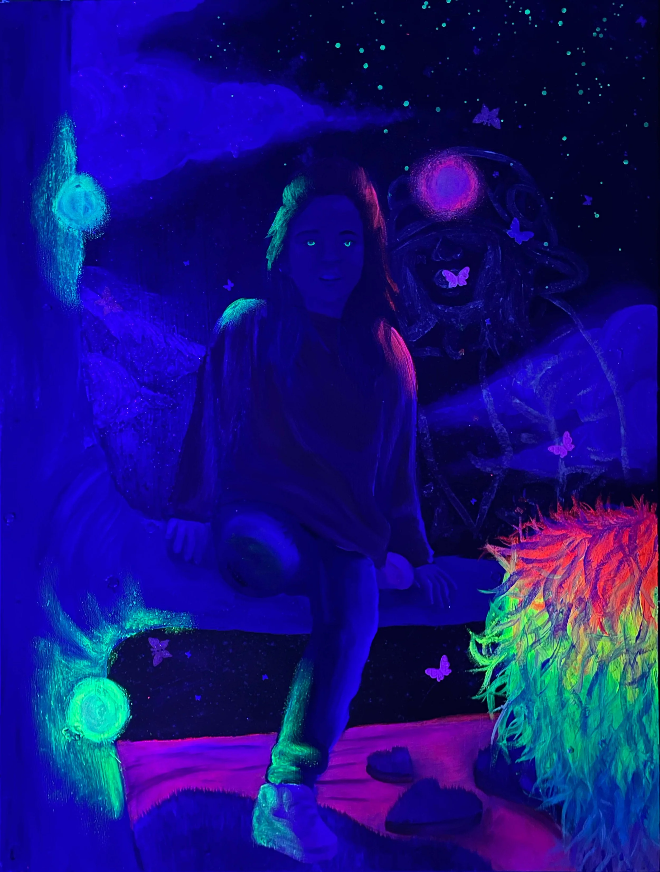 The Whole World Is Out To Get YouOils, Glitter, Rhinestones, Glow in the Dark Oils, Glass Beads2023Size Here